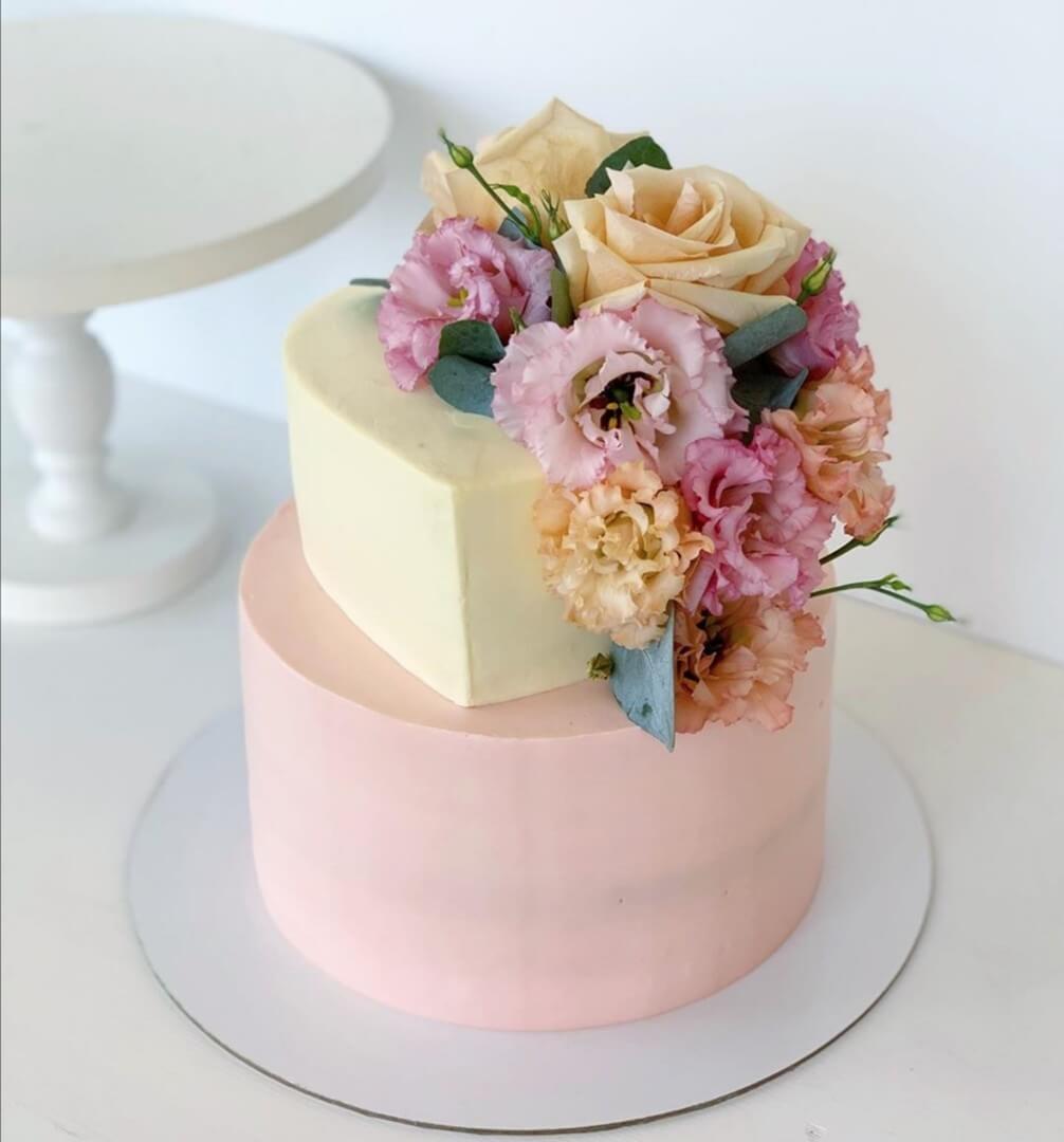 Трогательный нежный тортик, украшенный цветами, отлично впишется в заключительный аккорд свадебного вечера